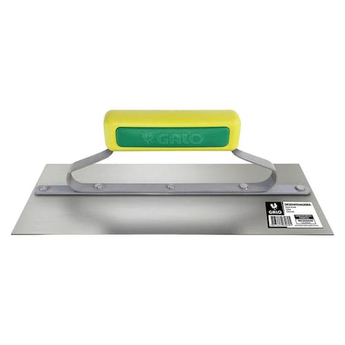 Descrição: A Desempenadeira Aço Inox Lisa Galo 12x29cm foi desenvolvida para profissionais que buscam precisão e qualidade no acabamento de superfícies com gesso. Seu corpo é fabricado em aço inoxidável, garantindo resistência à corrosão e maior durabilidade. O cabo fechado em polipropileno amarelo é fixado à base com cinco rebites, proporcionando uma pegada segura e confortável, mesmo durante longos períodos de uso.