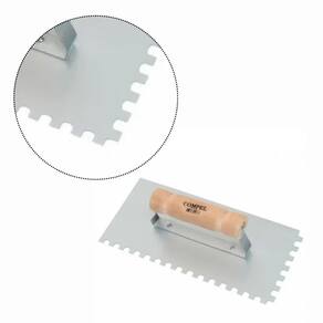 ATENÇÃO: As cores dos produtos podem sofrer variações em função das características do monitor. A Desempenadeira de aço dentada com cabo de madeira 12 x 25,5 cm da Compel é ideal para aplicação de argamassas, massa corrida, texturas, entre outros. Auxilia também na preparação e no nivelamento de superfícies. A Desempenadeira da Compel proporciona facilidade e conforto na execução dos serviços.