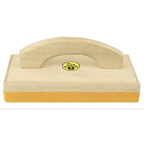 - Fabricada em madeira de origem renovável. - Tamanho 14 x 24 cm. - Cabo anatômico produzido em madeira. - Camada de espuma fixada à base da desempenadeira. - O cabo possui formato ergonômico, assegurando mais conforto durante o uso. NA