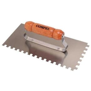 Desempenadeira Dentada Cabo De Madeira 12x25 Compel Descrição - Desempenadeira Dentada - Marca: Compel - Material: Aço e Madeira Especificações do Produto: -1un Desempenadeira de aço dentada, banhada em verniz anti oxidação. - Medidas 12 cm x 25,5 cm - Cabo de Madeira tratada anatômico Indicações: - Ideal para aplicação de argamassas,massa corrida,texturas entre outros. - Auxilia também na preparação e no nivelamento de superfícies. - Proporciona facilidade e conforto na execução dos serviços.