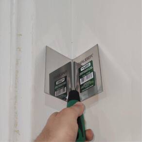 Desempenadeira inox canto interno massa drywall steel wood frame nauber fabricada em aço inox com cabo emborrachado proporciona ótimo acabamento e rendimento para os profissionais da pintura, pedreiros e instalação de paredes drywall. Para quem deseja realizar aplicações de massa corrida e reboco.