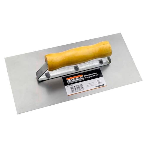 Descrição Fabricada em aço de ótima qualidade, possui uma empunhadura em madeira com haste metálica. É utilizada para espalhar uniformemente o cimento para reboco das paredes.