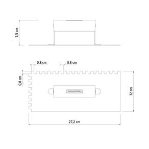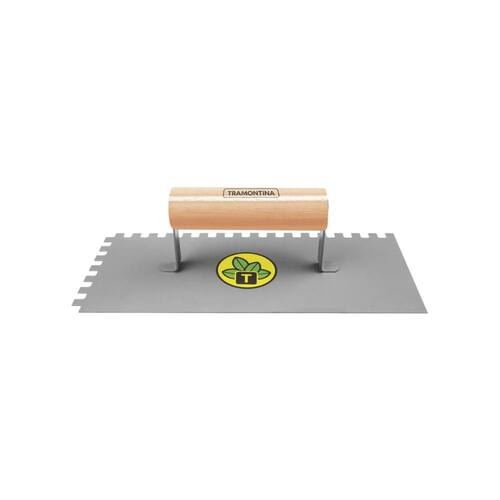 - Marca: Tramontina; - Referência: 77371/125; - Material: Aço carbono; - Fabricada em aço carbono especial de alta qualidade; - Recebe pintura eletrostática a pó, que tem uma melhor apresentação visual e maior proteção contra oxidação; - Possui dentes que são utilizados para formar sulcos na massa, para assentamento de lajotas e azulejos; - O cabo desta ferramenta, além de possuir ótima resistência, é produzido com madeira de origem renovável; - Cabo com acabamento envernizado, para um melhor acabamento e apresentação do produto. A camada protetora em verniz incolor realça sua tonalidade, concedendo brilho e um toque mais liso ao produto; - Garantia: 3 meses de garantia legal para vícios ou defeitos de fabricação.
