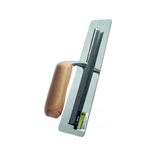 Desempenadeira em aço inoxidável e cabo de madeira.
