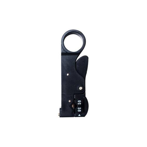 Fabricado em ABS injetado, o desencapador possui lâminas em Aço Inoxidável, garantindo durabilidade e precisão no desencapamento dos cabos. Sua regulagem de altura permite ajustar as lâminas de acordo com o diâmetro do cabo coaxial, facilitando o processo e evitando danos ao fio.