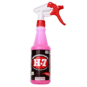 Desengraxante H-7 é um limpador multiuso, a base de água, não contem ácidos e solvente, e, portanto, não afeta plástico, borracha, inox e alumínio.