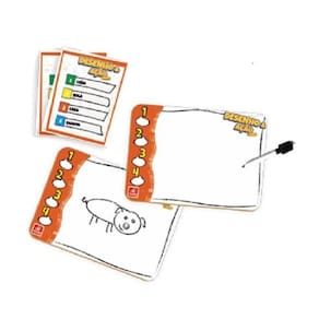 - Contém: 162 cartas, 1 ampulheta 2 lousas de madeira, 1 apagador e 1 caneta