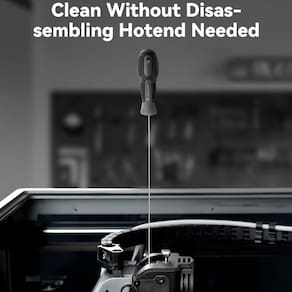 Transforme um reparo demorado em segundos! O desentupidor de bico Creality Clog Poke é uma ferramenta prática para desobstruir bicos entupidos sem desmontar o hotend, garantindo uma limpeza rápida e eficiente do extrusor.