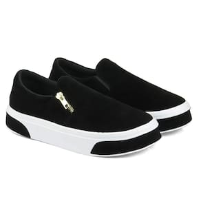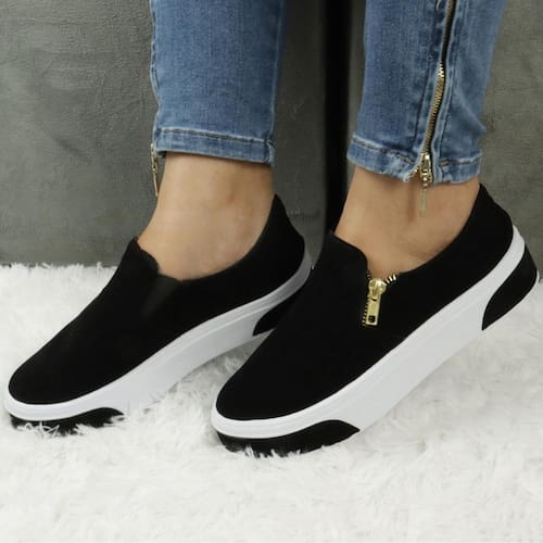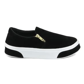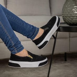 Desfile em Estilo com o Slip On Feminino em Camurça e Solado Com Tiras - 34 - Preto