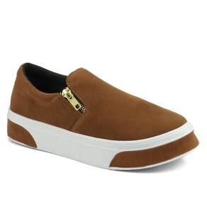 Desfile em Estilo com o Slip On Feminino em Camurça e Solado Com Tiras - 39 - Marrom