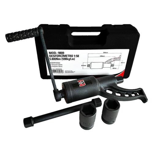 Desforcímetro 1-58 5.800nm (590kgf.M) Sgt-9809 Sigma Tools Indicado para fixar e soltar porcas e parafusos de caminhões e ônibus. Características: Facilita a desmontagem de rodas de ônibus e caminhões; Multiplica o torque; Reduz o esforço; Acompanha maleta plástica com 2 soquetes de impacto (32 e 33mm). Informações Técnicas: Toque máximo (Nm/kgf.M): 5800 / 590 Relação de transmissão 1:58 Encaixe quadrado (pol.): 1" Dimensões (C x L x H) (mm): 320 x 73 x 73 Peso (kg): 7,500