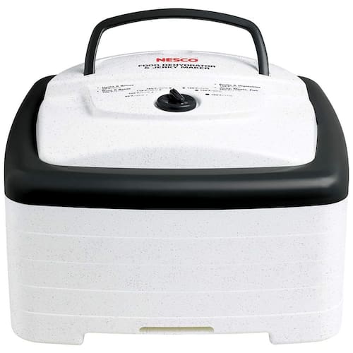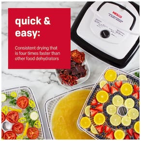 Embalagem do produto Embalagem padrão O NESCO FD 80 Food and Jerky Dehydrator é perfeito para produzir espasmódicos e ervas secas, frutas e legumes. O controle de temperatura ajustável 35 C a 71,1 C oferece a flexibilidade de obter os melhores resultados ao secar diferentes alimentos que precisam de configurações de temperatura variadas. Este desidratador é fornecido com 4 bandejas quadradas 36,83 x 36, e expande até 8 bandejas, para que você possa secar grandes quantidades, sem necessidade de rotação da bandeja. Bandejas Add A adicionais vendidas separadamente. O silencioso e potente ventilador Converga Flow força o ar aquecido pela câmara pressurizada externa e depois horizontalmente em cada bandeja individual. O fluxo de ar converge no centro para uma secagem rápida e consistente quatro vezes mais rápida que outros desidratadores. O tempero e a cura da amostra estão incluídos para começar. O NESCO FD 80 Food and Jerky Dehydrator fornece o poder de secagem para desidratar grandes petiscos espasmódicos e de frutas para o estilo de vida ativo.
