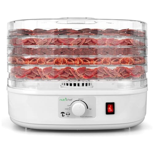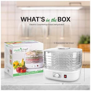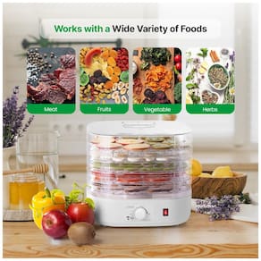 DESIDRADOR ELÉTRICO Um desidratador elétrico de várias camadas que pode preservar variedades de alimentos. Produz alimentos nutritivos e de preparo muito simples. Nenhum alimento vai estragar e vai para o lixo com este conservante de alimentos. ACESSO E OPERAÇÃO FÁCEIS Construído com um botão operacional fácil de usar. Escolha desidratar com apenas um clique. Possui sistema de controle de temperatura com no máximo 180 F, 82C. BANDEJAS EMPILHÁVEIS Vem com 5 bandejas de alimentos empilháveis removíveis ou bandejas de secagem. Essas bandejas também podem ser usadas para secar alimentos sem o uso do desidratador. Como as bandejas são removíveis, elas são muito fáceis de limpar incluindo a máquina de desidratação. CONSERVA DE ALIMENTOS Este desidratador usa controle de temperatura para preservação de alimentos. Ele pode desidratar e preservar a carne como o infame charque. Também fabrica lanches orgânicos saudáveis ao desidratar frutas, vegetais e fazer batatas fritas ou couve, etc. CIRCULAÇÃO DE CALOR Testado cientificamente para aumentar a vida útil dos alimentos com alta circulação de calor que passa por cada bandeja. Seca eficazmente os alimentos removendo o teor de umidade, diminuindo os alimentos, mas ainda retém 97 das vitaminas e minerais. Componentes incluídos desidratador de alimentos, 5 bandejas de alimentos Forma do item quadrado