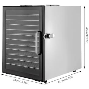 Possui 10 bandejas, cada uma com tamanho de 29 x 29 centímetros, oferecendo excelente espaço de expansão para secar vários alimentos ao mesmo tempo. Com 800 watts de potência, este desidratador alcança o efeito de secagem desejado em menos tempo, tornando o eficiente e econômico em termos de energia. Utiliza uma porta frontal de vidro e uma luz LED embutida, permitindo acompanhar o andamento do processo de secagem e identificar mudanças sutis na secagem dos alimentos. A operação estável do sistema de fluxo de ar horizontal mantém o nível de ruído abaixo de 48 decibéis, garantindo que você não será perturbado por ruídos altos ao secar lanches caseiros. Na parte frontal da máquina, há um painel de controle LED transparente. Basta conectar a energia, pressionar o botão de ligar, desligar e configurar o tempo e a temperatura para iniciar o processo de secagem.