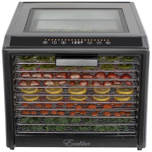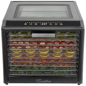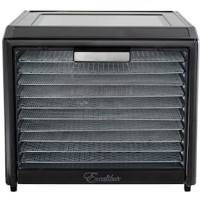 Material: aço inoxidável, vidro Cor: Grafite Potência: 800 watts Dimensões do produto: 20,67D x 40, x 43, Tensão: 120 Peso do item: 12,2 quilos Formato: Retangular Característica material:para alimentos Número de bandejas: 10 A máquina de lavar louça é segura: não Peso do item: 12,2 quilos Fabricante: Excalibur Número do modelo do item: DH10SSSS13