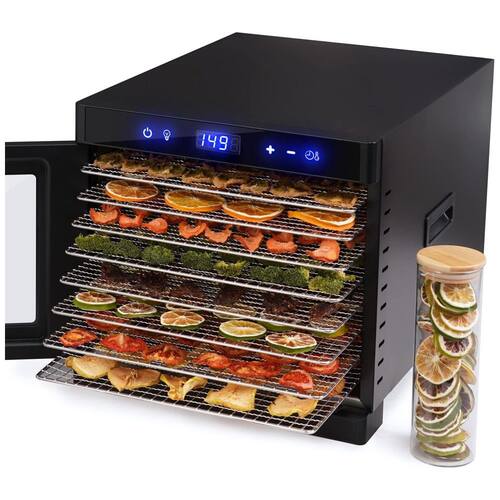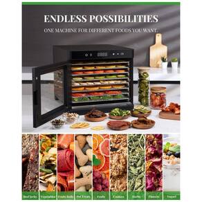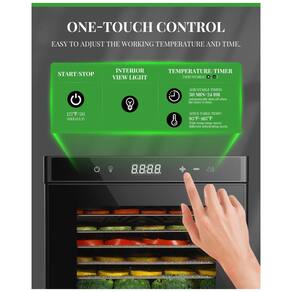 O desidratador de alimentos GDOR atualizado possui 8 bandejas de aço inoxidável premium que permitem carregar mais alimentos de uma só vez. Basta tocar na tela para iniciar, a temperatura de trabalho e o cronômetro podem ser ajustados facilmente, a temperatura precisa de 95 167 35 a 75 C e o cronômetro de 24 horas criam possibilidades infinitas. Incluir receitas feitas pelo chef são úteis, especialmente para iniciantes. Além disso, tela de malha e folha de rolo de frutas são preparadas para pequenos itens e rolos de frutas. Nossos sacos de zenamento especiais mantêm os alimentos desidratados frescos e crocantes por mais tempo. Garantir frescor e nutrientes Os desidratadores retêm enzimas dietéticas valiosas, além de garantir que os alimentos estejam frescos e mantenham todos os seus nutrientes. Mas outros aparelhos projetados para cozinhar quente, como forno e fritadeira, na verdade os destroem Além disso, o desidratador cozinha uniformemente com fluxo de ar e temperatura adequados, basta definir o tempo e a temperatura, supervisão mínima necessária do que outros aparelhos. No geral, um desidratador garante a melhor desidratação 8 bandejas de aço inoxidável Os desidratadores para comida e carne seca equipam 8 bandejas de aço inoxidável, oferecem mais espaço para fazer uma variedade de alimentos ao mesmo tempo. É perfeito para fazer carne seca, frutas, guloseimas para cães, iogurte e muito mais. Configuração precisa de temperatura e tempo O desidratador de frutas possui funções de tempo e temperatura ajustáveis. Selecione o tempo exato e a temperatura desidrata vários alimentos. Secá los pode ser definido 95 167 35 a 75 C, enquanto o tempo de cozimento pode ser definido 1 24 horas. Supervisão mínima necessária Controle de um toque O desidratador jerky com visor é fácil de operar tocando levemente. Ao definir o tempo e a temperatura, a tela de LED mostra os detalhes claramente. Durante o trabalho, o visor também informa o tempo de trabalho restante. A porta transparente e a luz de visão interna permitem que você observe o processo de secagem de cada alimento a qualquer momento. e durável Equipado com desligamento automático e proteção contra superaquecimento que garante segurança mesmo quando você está dormindo ou não em casa. A máquina desidratadora de carne listada na ETL inclui os principais recursos de segurança. Todos os materiais são de grau culinário, o que garante alta qualidade e longa vida útil. Fácil de limpar As 8 bandejas de aço inoxidável do secador de alimentos podem ser lavadas na máquina de lavar louça e os forros da bandeja podem ser lavados na prateleira superior da máquina de lavar louça se você removê los antes do ciclo de secagem. Além disso, as bandejas podem ser limpas em minutos com uma escova macia e água morna com sabão Marca: Não Informado