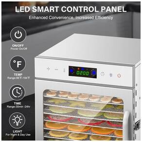 Este desidratador de alimentos HOPERAN é um equipamento de alta qualidade, fabricado em aço inoxidável 100 livre de bisfenol A e equipado com 8 bandejas removíveis também de aço inoxidável 304 de qualidade alimentar, cada uma medindo 27 x 20 cm. Com capacidade para desidratar diversos tipos de alimentos, como vegetais, frutas, carnes e flores, este desidratador é equipado com um controle de temporizador ajustável que permite definir tempos de secagem em incrementos de 30 minutos, com duração máxima de 24 horas, e predefinições digitais de temperatura que variam de 30ºC a 90ºC, permitindo ajustar a temperatura em incrementos de 9 graus. O cronômetro será exibido quando a desidratação for concluída e desligará automaticamente quando terminar, garantindo um processo completo e eficiente.