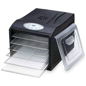O Desidratador de Alimentos Samson "Silent" é ideal para desidratar frutas, ervas, carnes, vegetais e petiscos para cães. Com 6 bandejas de aço inoxidável, oferece uma grande capacidade de secagem. O controle de temperatura ajustável até 70°C e o temporizador de 19 horas garantem resultados precisos e consistentes. O painel de controle digital com display LCD facilita o uso e o monitoramento do processo de desidratação. Perfeito para preparar alimentos saudáveis e deliciosos em casa. Inclui bandejas laváveis na máquina de lavar louça, uma bandeja de gotejamento e folhas de silicone para desidratação.