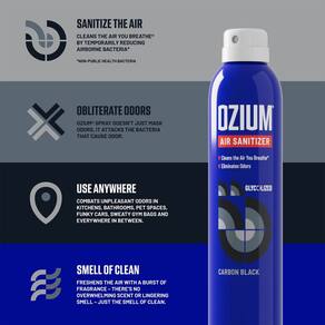 - Mais do que apenas um purificador de ar: o spray desinfetante de ar OZIUM não é o seu aromatizador de ar típico de casa ou carro, faz com que os odores desapareçam reduzindo bactérias e germes causadores de odor.