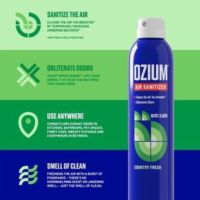 Ozium Desinfetante de ar e eliminador de odores para casas, carros, escritórios e muito mais, Country Fresh, 100 ml (pacote com 4)
