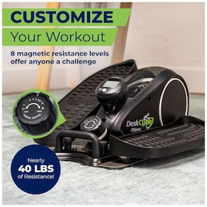 MULTI TAREFA Nossa máquina elíptica sob a mesa de qualidade premium pode ajudá lo a queimar calorias, aumentar seu nível de energia, aumentar a produtividade e reduzir o desconforto enquanto você trabalha RESISTÊNCIA MAGNÉTICA Esta máquina de exercício elíptica compacta possui resistência magnética ultra suave, um volante superior e uma base robusta. É silencioso, então você nunca incomodará aqueles ao seu redor FÁCIL DE USAR Grande display LCD de 6 funções rastreia revoluções, RPM, tempo, calorias queimadas e muito mais Para facilitar a leitura, remova a tela de baixo da mesa e coloque a em sua mesa com o suporte de exibição incluído. FORÇA DE CONSTRUÇÃO Escolha entre 8 níveis de resistência diferentes, de muito fácil a muito difícil Esta máquina elíptica sentada é a bicicleta de exercício de perna perfeita para idosos, fisioterapia ou qualquer pessoa que queira ficar mais ativa. SWITCH IT UP Pedais extra longos e largos permitem que você ajuste a forma do seu movimento elíptico de acordo com o local onde você coloca os pés Coloque os em cima do pedal para maximizar o movimento para cima, para baixo, ou para baixo para mais passadas horizontais Marca: Não Informado
