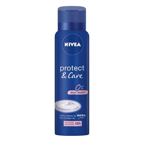 O Desodorante Aerosol Nívea Protect & Care possui uma tecnologia diferenciada inovadora hidratante e proteção contra transpirações excessivas. Desenvolvido com a mesma fórmula e perfume do mais famoso creme Nívea. Garante uma hidratação intensificada nas axilas prevenindo manchas e mau odor causada pela proliferação de bactérias e a transpiração. O Desodorante Aerosol Nívea Protect & Care é um antitranspirante de ótima qualidade promove total segurança e comodidade, além de uma sensação de banho tomado e refrescância durante todo o dia.