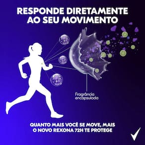 A cada ano as pessoas se movimentam menos. Sentamos e esperamos, seja no escritório ou no trânsito. Mas, na verdade, sabemos que quanto mais a gente se move, mais a gente vive. Rexona Active Emotion proporciona 48 horas de proteção contra a transpiração e o mau odor, deixando você confiante do primeiro ao último passo Sua fórmula possui microcápsulas especiais que, quando uma situação estrassante causa transpiração, essas cápsulas liberam a proteção antitranspirante. Além disso, Rexona Active Emotion contém a inovadora tecnologia MotionSense™. Suas exclusivas microcápsulas são quebradas pelo atrito dos movimentos, liberando proteção extra ao longo do dia. Proteção para te manter em movimento.Rexona. Não te abandona.