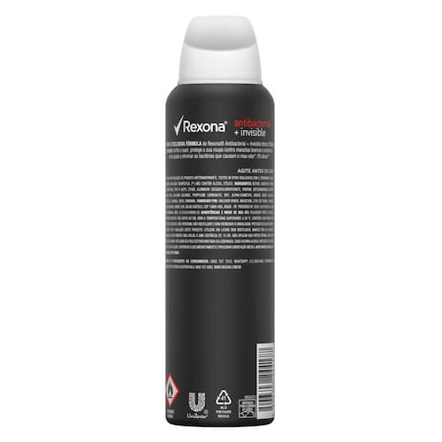 O Desodorante Rexona Antibacterial Invisible Feminino Aerosol é imbatível contra manchas* e conta com proteção antibac**; Possui Exclusiva Tecnologia MotionSense: proteção para te manter em movimento. Garante 48 horas de proteção contra o odor e a transpiração. Produto Testado dermatologicamente; Não contém álcool etílico.