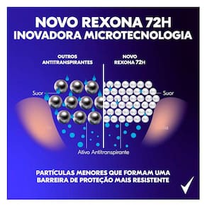 Sobre a marca: Lançada no Brasil em 1969, Rexona, marca da Unilever, é líder do mercado brasileiro de desodorantes. A marca tem consolidado e ampliado sua presença por meio de uma constante inovação em sua linha de produtos, formulações e embalagens. Rexona é, há 16 anos, a primeira marca de desodorantes que vem à cabeça do consumidor brasileiro, de acordo com a pesquisa Top of Mind do Instituto Datafolha. Rexona te dá a confiança necessária para enfrentar os desafios do dia a dia. Com a exclusiva tecnologia de Rexona, que libera proteção adicional conforme a necessidade, você sabe que seu desodorante não vai te deixar na mão. Melhor ainda, hoje a marca oferece produtos que atendem às necessidades específicas dos consumidores através das linhas Rexona Women, Rexona Men e Rexona Teens.