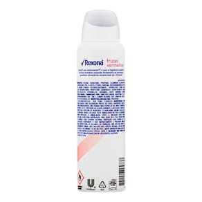 O Desodorante Aerossol Rexona Frutas Vermelhas contém a inovadora tecnologia MotionSense, suas exclusivas microcápsulas são quebradas pelo atrito dos movimentos, liberando proteção extra ao longo do dia. O Desodorante Aerossol Rexona Frutas Vermelhas possui fragrância que é suave e fresca, ideal para te deixar confiante o dia inteiro. Possui fragrância suave e fresca com ação antitranspirante que proporciona a sensação refrescante de banho fresco ao longo do dia. Proporciona 48 horas de proteção contra a transpiração excessiva e o mau odor, com uma fragrância que combina ingredientes refrescantes com propriedades antioxidantes para deixar você mais confiante e com a sensação de frescor como nunca antes.