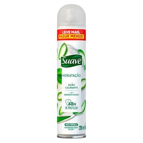 O Desodorante Aerosol Suave proporciona máxima proteção contra a transpiração excessiva sem deixar resíduos nas axilas. Sua fórmula com Aloe Vera e micro partículas ativas, mantem a pele das axilas hidratadas, protegendo por até 48 horas com uma sensação única de recém-saída do banho.Com ingredientes que auxiliam no combate da proliferação de bactérias causadoras do mau, proporcionando uma sensação de bem-estar e refrescância por muito mais tempo.