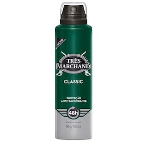 O Desodorante Aerosol Tres Marchand Classic foi especialmente desenvolvido com notas Cítricas, com um leve toque amadeirado destacando assim personalidade masculina. Sua Fórmula proporciona 48 horas de proteção, deixando uma sensação de segurança e bem estar durante o dia, Além de possuir Fórmula antitranspirante.