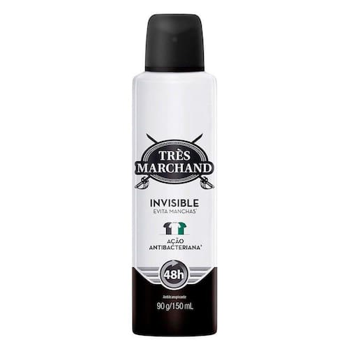 O Desodorante Aerossol Antitranspirante Très Marchand Invisible proporciona um toque de sensualidade, ideal para o dia e principalmente à noite. Sua Fórmula proporciona 48 horas de proteção, deixando uma sensação de segurança e bem estar durante o dia, Além de possuir Formula antitranspirante. Conta ainda com ação invisible anti-machas.