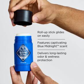 Desodorante masculino Jack Black Pit Boss — Desodorante Jack Black para homens, antitranspirante para homens, desodorante antitranspirante masculino, desodorante masculino, desodorante masculino para pele sensível, presentes masculinos — O antitranspirante e desodorante Jack Black Blue Midnight Pit Boss é um bastão sólido que oferece proteção superior contra odores e umidade. A fórmula suave antitranspirante e desodorante não irrita a pele delicada das axilas.