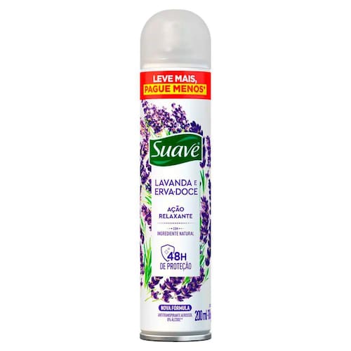 O Desodorante Aerosol Suave Lavanda E Erva Doce foi desenvolvido com ingredientes que ajudam a combater a proliferação de bactérias causadoras do mau odor além de proporcionar sensação de bem estar e refrescância por muito mais tempo.