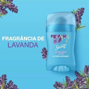 O Desodorante Antitranspirante Em Barra Com Ph Balanceado de Secret é ideal para você que busca muito mais proteção às suas axilas. Possui cheiro suave e delicado da lavanda e não deixa manchas em sua roupa, além de garantir proteção do odor por até 48 horas graças a sua tecnologia com cápsulas ativas que reagem repetidamente encapsulando e neutralizando o mau cheiro.