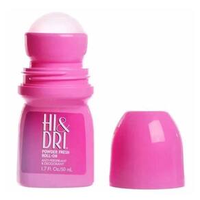 Desodorante Hi & Dri Roll-on Powder Fresh 50ml Kit com 5 Pç. DESODORANTE HI & DRI ROSA - Desodorante roll-on especialmente elaborado com ingredientes ativos que garantem toda proteção contra o desconforto da transpiração, criando uma sensação de bem estar durante todo o dia. Sua fragrância contêm notas elegantes de rosa e jasmim. Acordes de ylang e gerânio harmonizam-se com acordes quentes de madeiras.