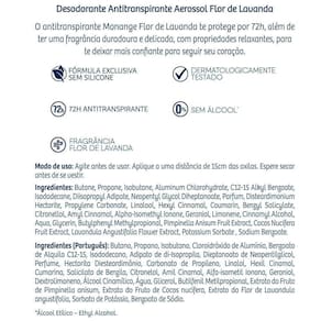 Características do produto: Marca: Monange Modelo: Desodorante Monange Aerosol Flor de Lavanda Volume: 150ml
