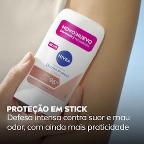 NIVEA Antitranspirante Stick Derma Protect Clinical entrega 96 horas de proteção à pele contra suor e odor, possibilitando liberdade para viver ao máximo sem medo de transpirar. Além disso, o cuidado está presente para manter a hidratação, maciez e beleza da pele. Aproveite uma eficácia elevada sem agredir ou manchar a sua axila.