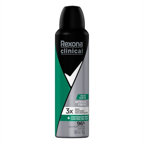 - Rexona Men Clinical Intense Fresh está disponível no formato desodorante aerosol.
