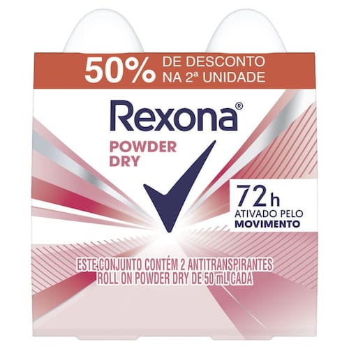 Desodorante Rexona Roll On Powder Dry Desodorante Antitranspirante Rexona Feminino Rollon POWDER DRY • Exclusiva Tecnologia MotionSense: proteção para te manter em movimento • 48 horas de proteção con