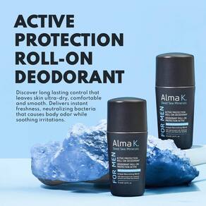 Desodorante Roll On Alma K Active Protection - Desodorante masculino - Desodorante sem alumínio para homens - Desodorante sem álcool para peles sensíveis - 2,6 onças