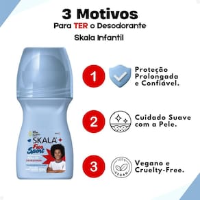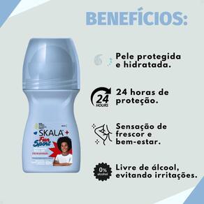 O Desodorante Roll-on Infantil Skala Fun Sport é perfeito para o uso diário, acompanhando as crianças em suas atividades escolares, brincadeiras e práticas esportivas.
