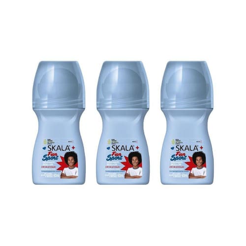 Na compra deste kit será enviado 03 unidades do desodorante roll-on skala 60ml kids fun sport cada