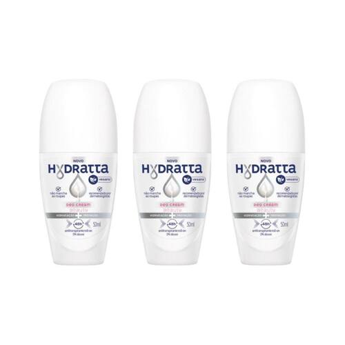 Desodorante roll-on hydratta 50ml deo cream beauty - kit com 3un