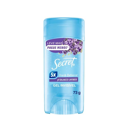 Desodorante Secret em Gel Antitranspirante Lavanda 73g O desodorante antitranspirante Secret em Gel pH Balanceado Lavender tem uma fragrância suave de Lavanda. Leve mais pague menos* agora com o novo