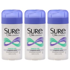O antitranspirante e desodorante sólido autêntico Sure, sem perfume, foi lançado pela casa de design de sure. Proteção 24 horas por dia contra odores e umidade. Permanece na pele, não nas roupas. Recomendado para uso diário.