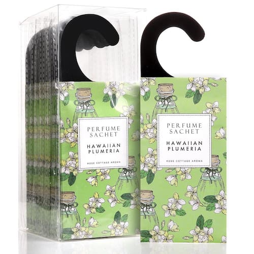 ROSE COTTAGE Pacote grande de 12 pacotes havaianos Plumeria desodorizante para armário de pendurar aromatizador de ar sachês perfumados de longa duração para casa