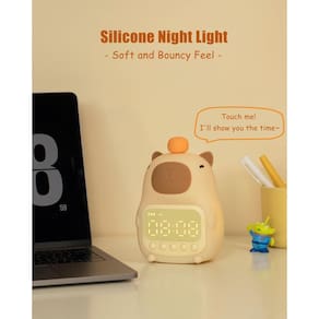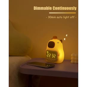 Apresentamos o Despertador Capybara Kids, uma deliciosa combinação de funcionalidade e charme projetada para apoiar a rotina de sono de seu filho. Este adorável relógio usa luz suave e ícones intuitivos para ensinar quando é hora de ficar na cama ou acordar. Sua luz noturna macia e colorida oferece conforto para crianças que dormem sozinhas. Diga olá às noites tranquilas e às manhãs mais felizes com o Capybara Alarm Clock!
