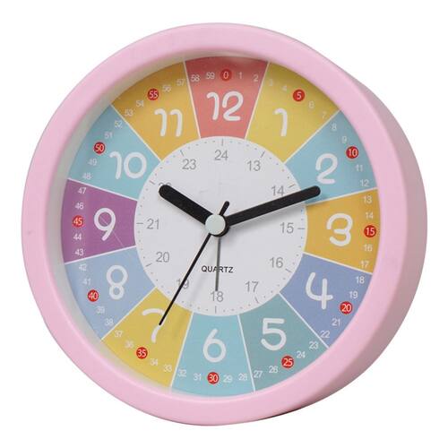 Material: plástico Tamanho: 12* 4 cm Peso: 160 g Design vibrante e divertido: o mostrador rosa brilhante e multicolorido do relógio torna agradável aprender a contar as horas, com números fáceis de ler e divertidos tons pastel. Mecanismo silencioso de não tique-taque: apresenta um movimento silencioso e sem tique-taque, tornando-o ideal para pessoas com sono leve, crianças e qualquer pessoa que prefira um ambiente tranquilo. Ideal para crianças e estudantes: com um mostrador simples e fácil de ler, este relógio é perfeito para crianças e estudantes, ajudando-os a aprender a contar as horas e, ao mesmo tempo, adicionar um toque divertido aos seus quartos. Durável e seguro: construído com plástico de alta qualidade, este relógio é leve, resistente e seguro para crianças, tornando-o adequado para uso diário. Operado por bateria: alimentado por baterias, este despertador portátil é fácil de colocar em qualquer lugar em uma mesa, mesa de cabeceira ou sala de aula, oferecendo conveniência e praticidade.